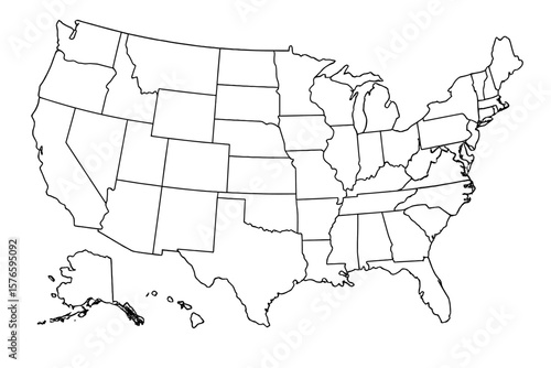 United States Map Outline with State Borders, Blank USA Vector, Political Division, Editable Map, Printable Geography Resource, American States, Educational Template