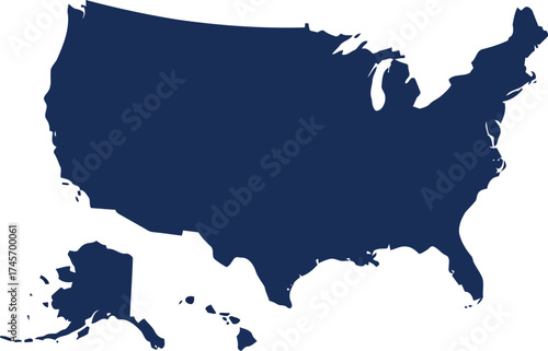 United states map silhouette isolated dark blue graphic vector