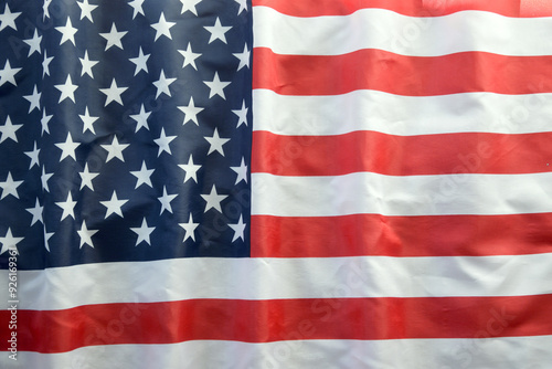United States of America flag with stars and stripes close up. Official US Banner waving with folds