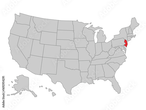 United States political map with New Jersey state highlighted, vector illustration of US map with states