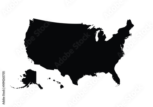 United states US silhouette. This image shows the black silhouette of the United States map, including Alaska and Hawaii. Vector clipart illustration design.
