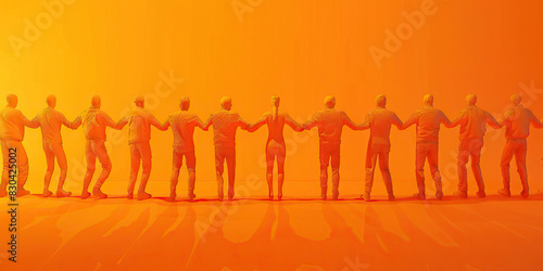Unity in Orange: Figures Joined Together, Representing Mutual Support and Solidarity