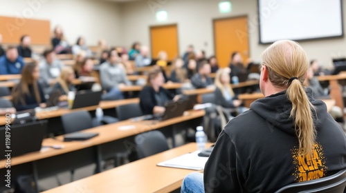 University Lecture Hall Students Attentively Listening to Professor Discussion : Generative AI