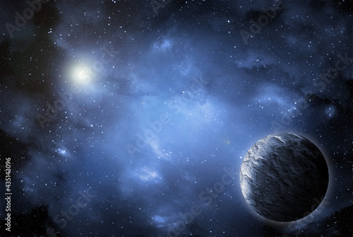 Unknown planet from outer space. Space nebula. Cosmic cluster of stars. Outer space background. 3D Illustration