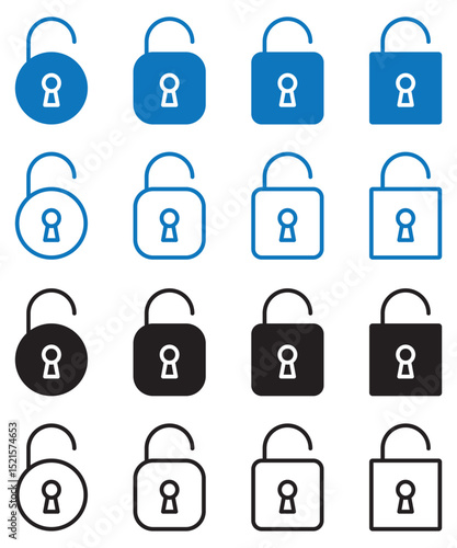 Unlocked Padlock icon set vector illustration. Unlocked Padlock icon set solid and line style. vector collection eps file.