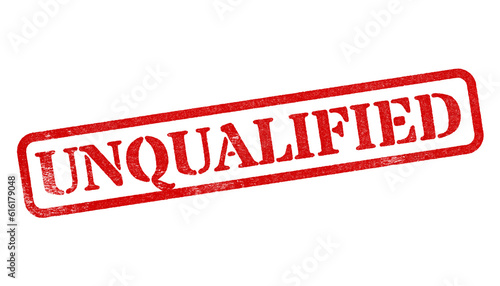Unqualified red rubber stamp isolated on transparent background with distressed texture effect