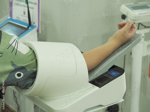 Unrecognizable patient and doctor as doctor takes blood pressure