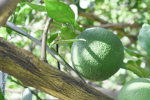 unripe green oranges on tree, close-up of a beautiful orange tree with green oranges, fruit hanging on a tree, Close-up of unripe oranges hanging on a tree, Chakwal, Punjab, Pakistan