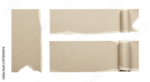Unveiling Paper Strips: A collection of torn paper strips reveals a layered composition of texture and form, each fragment inviting exploration through a tactile journey