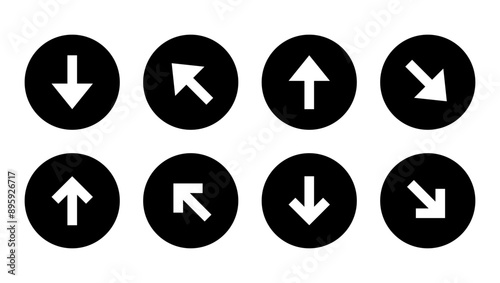 Up and down direction arrow icon set on black circle. Upward and downward concept