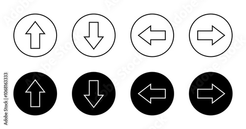 Up, down, left, and right arrow line icon black circle