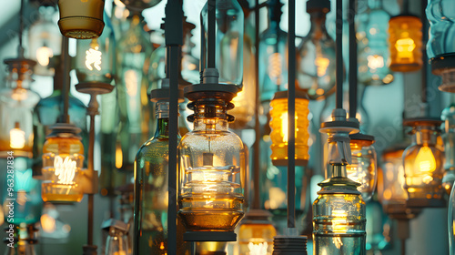 Upcycled Elegance: A Lamp Created from Repurposed Glass Bottles and Metal Scraps