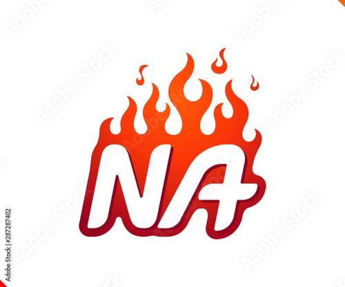 Uppercase initial logo letter NA with blazing flame silhouette, simple and retro style logotype for adventure and sport activity.