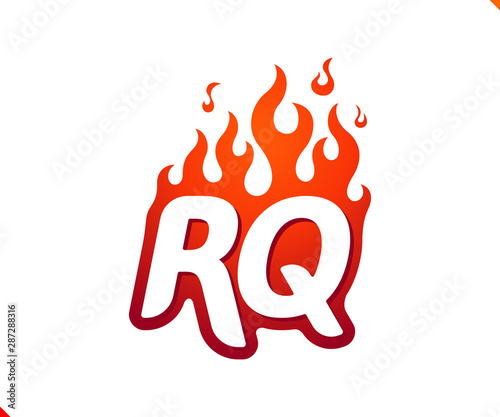 Uppercase initial logo letter RQ with blazing flame silhouette, simple and retro style logotype for adventure and sport activity.