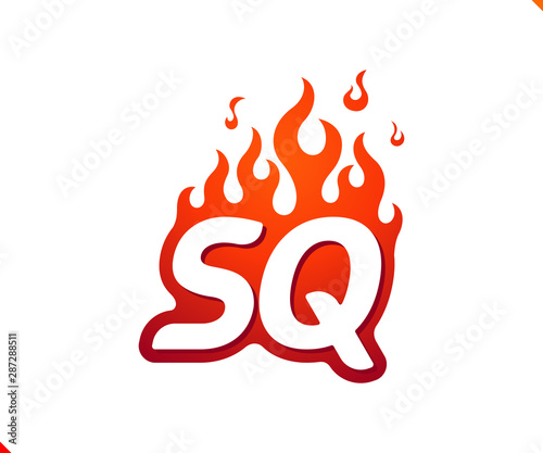 Uppercase initial logo letter SQ with blazing flame silhouette, simple and retro style logotype for adventure and sport activity.
