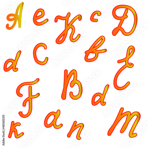 uppercase large and small letters are orange - yellow on a white background.