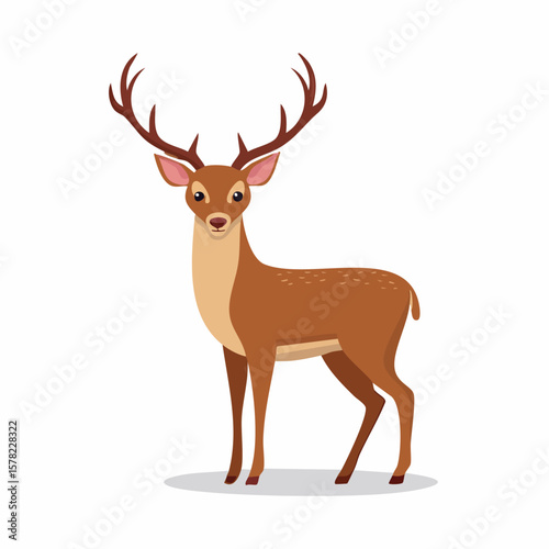 Upright Deer with Large Antlers in a Cartoon Illustration Style