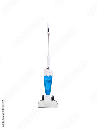 Upright vacuum cleaner isolated on white background. Hoover.