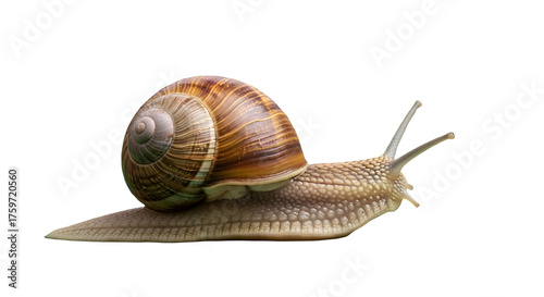 Upscaled macro captures the textures and patterns of a snail against a serene green backdrop.