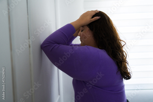 Upset big woman suffering from depression