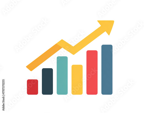 Upward Arrow Over Bar Chart isolated on a transparent background