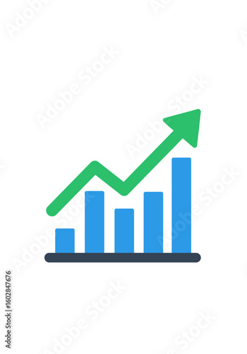 Upward Trend Chart with Green Arrow and Blue Bars, Business Concept