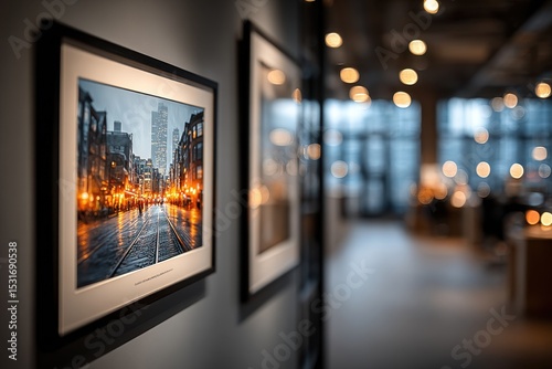Urban Art Gallery Interior with Modern Cityscape Photography