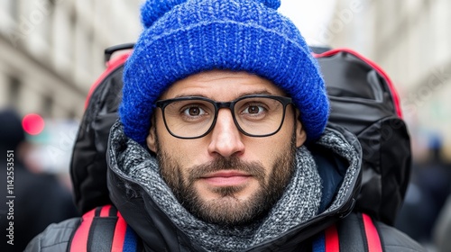 Urban Explorer: A Portrait of a Man in a Blue Beanie