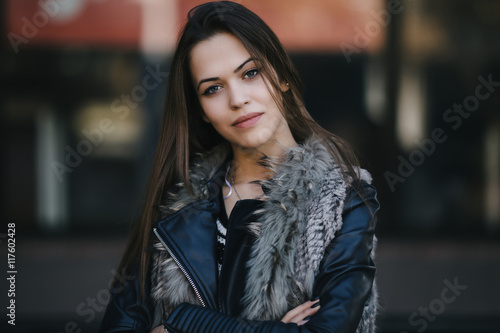 Urban fashionable portrait of beautiful young woman