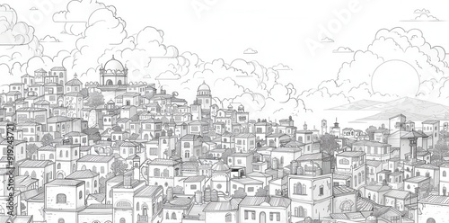 Urban Landscape. Cityscape drawing with detailed background