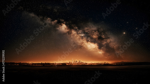 Urban Milky Way Night View Photography Material, Artistic Landscape of Dreamy Urban and Cosmic Starry Sky