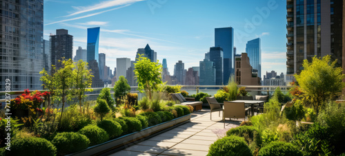 Urban oasis rooftop garden amidst city skyscrapers