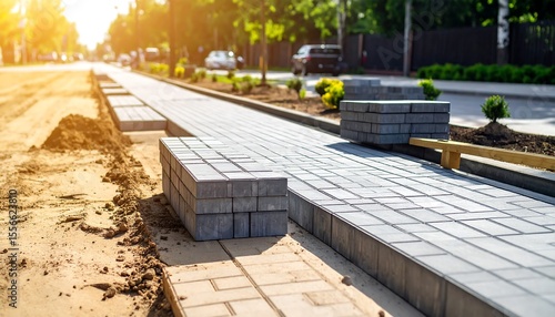 Urban sidewalk construction in progress