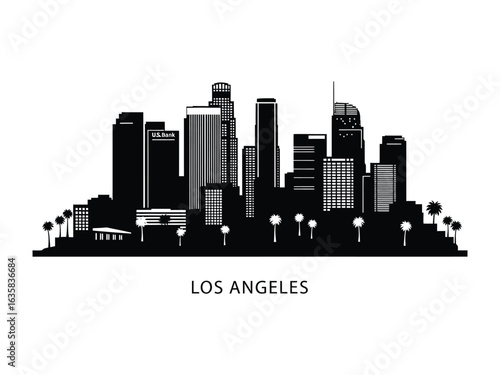 Urban Silhouette: A striking monochrome silhouette of a city skyline, capturing the modern architecture with bold lines, minimalist aesthetic, and artistic representation of an iconic urban center.