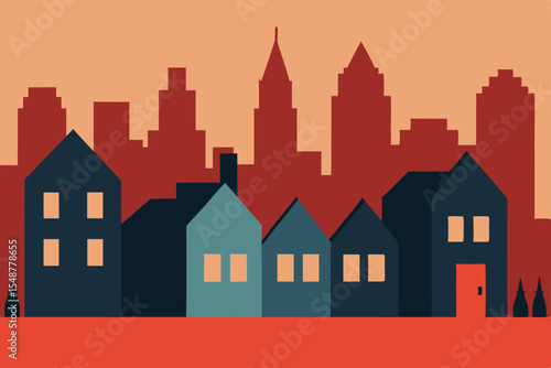 Urban Skyline and Suburban Homes A Cityscape Illustration