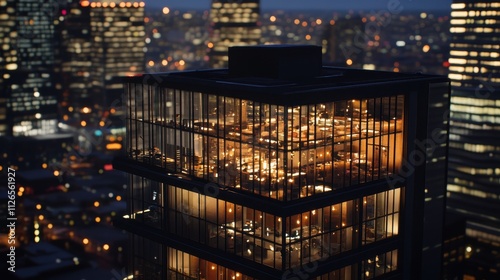 Urban Skyline at Night: Illuminated Windows in Office Building