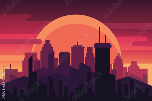 urban skyline bathed in anime sunset