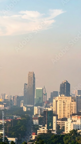 Urban Skyline Obscured by Thick Smog and Pollution in Distant City