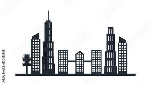 Urban vector illustration of a city skyline silhouette with diverse buildings and towering skyscrapers silhouette commercial area 3d highest modern building icon
