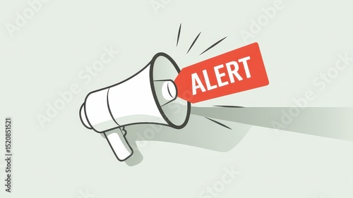Urgent health warning notice concept. Megaphone with an alert tag, symbolizing urgency and announcements.