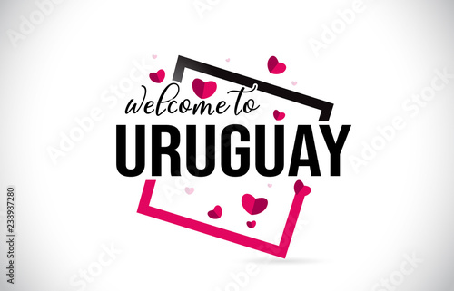 Uruguay Welcome To Word Text with Handwritten Font and Red Hearts Square.