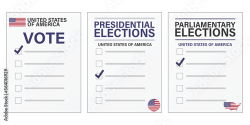 USA elections Voting ballot mockup for presidential and parliamentary elections