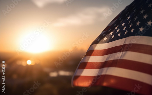 USA flag with the sunrise sky, American freedom, independence day, July fourth background