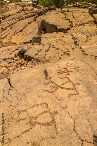 USA, Hawaii, Waikoloa. Petroglyph figures in rock. Credit as: Cathy & Gordon Illg / Jaynes Gallery / DanitaDelimont.com