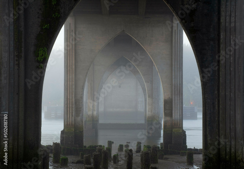 USA, Oregon, Florence, Siuslaw River Bridge at sunrise