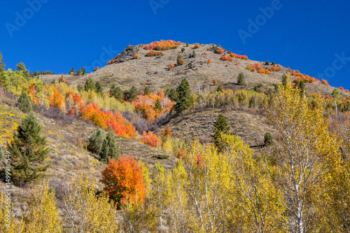 USA, Wyoming. Alpine hillsides in autumn color with Aspen and maple