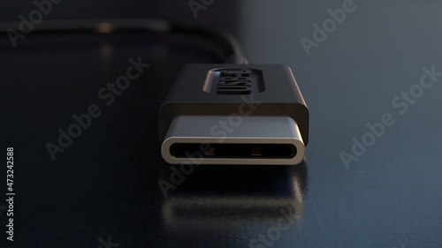 USB type C cable connector front view close-up 3Dcomputer generated image