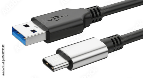 USB-A to USB-C 3.0 Black Cable Product Shot on White Background