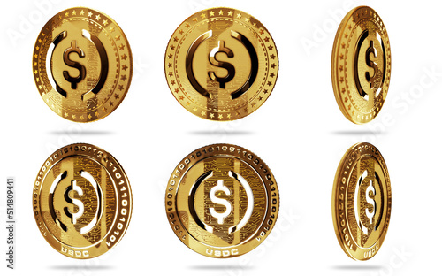 USDC USD Coin stablecoin cryptocurrency golden coin 3d illustration