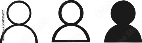 User avatar icon, profile symbol in outline and solid style, flat person icon
